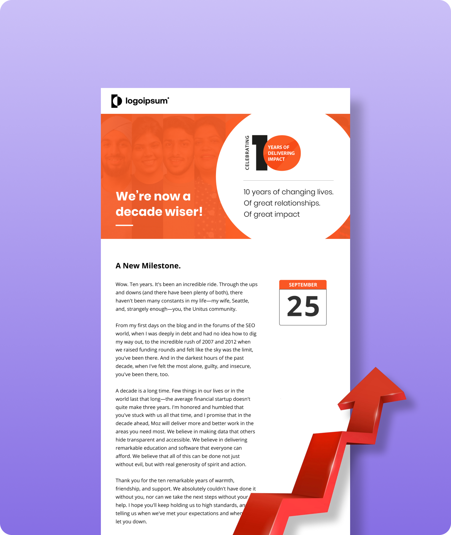 Celebration-focused email highlighting achievements with a strong storytelling approach.