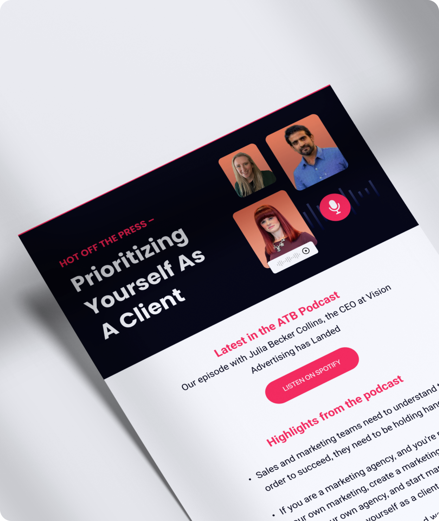 Engagement-focused email designed to spark interest and drive episode listens.
