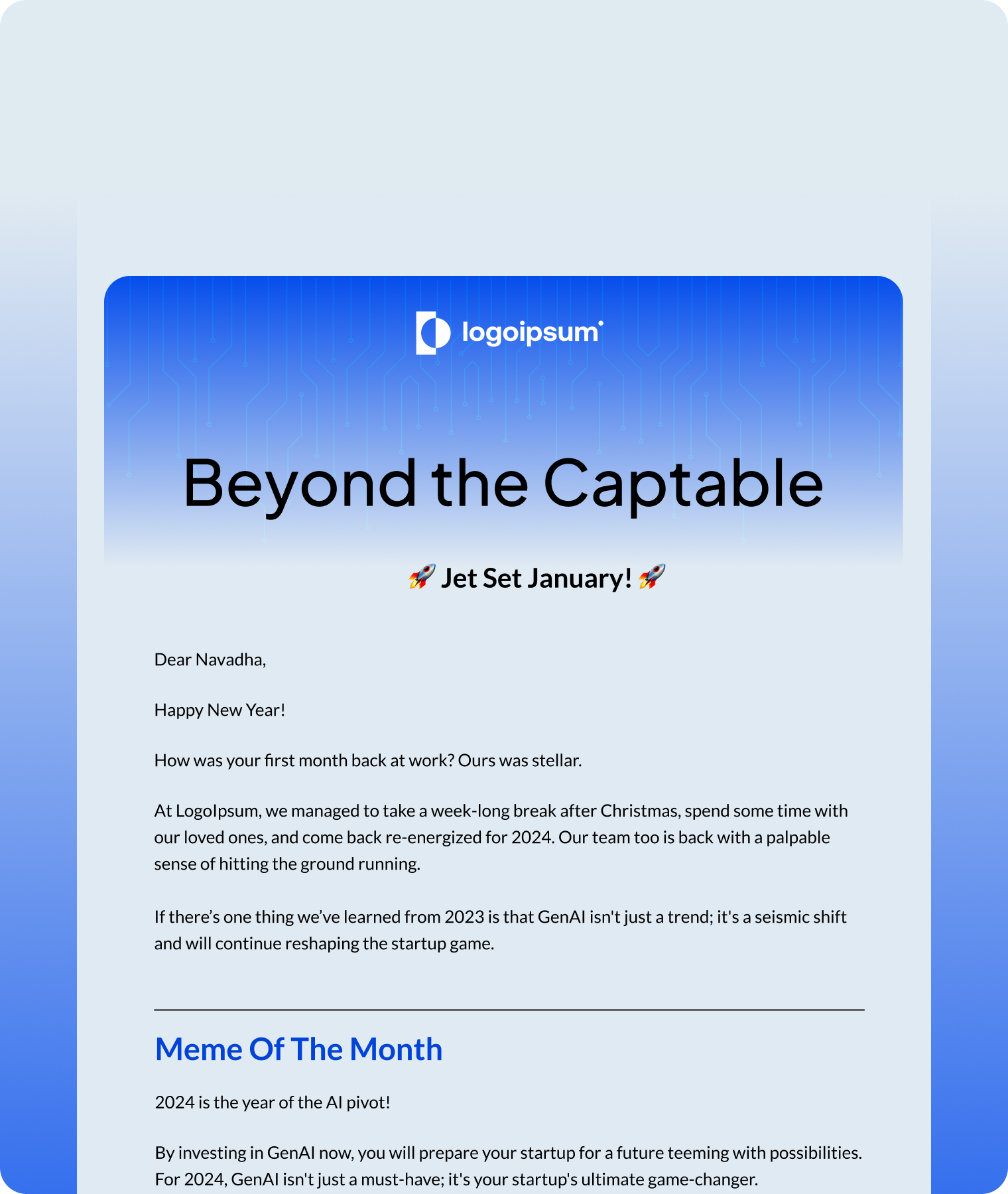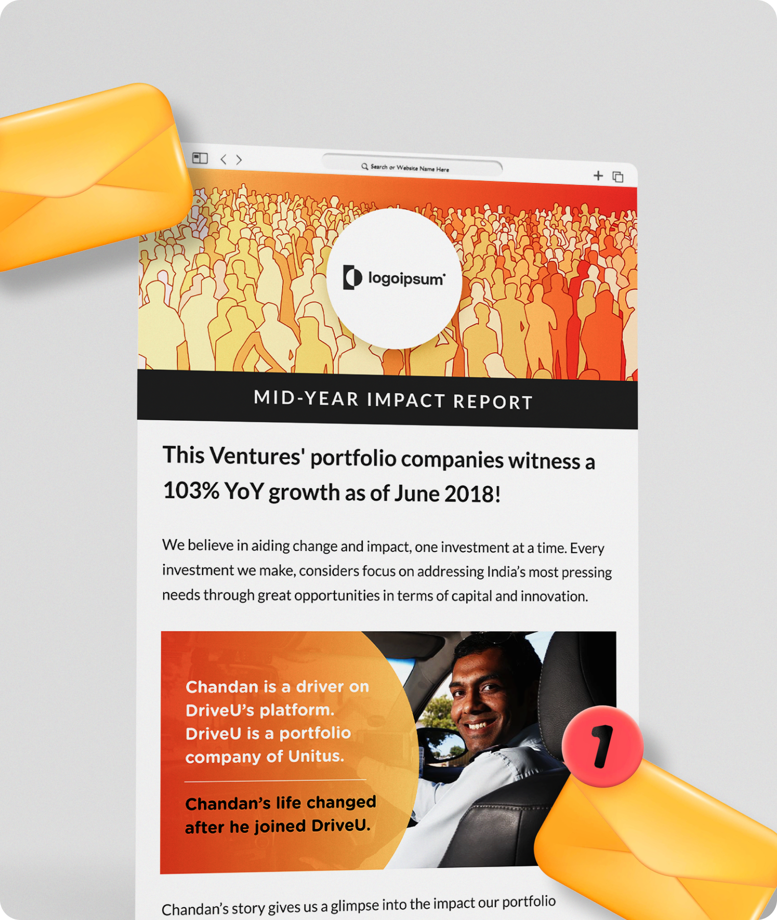 Update-driven email showcasing portfolio momentum and key highlights at a glance.