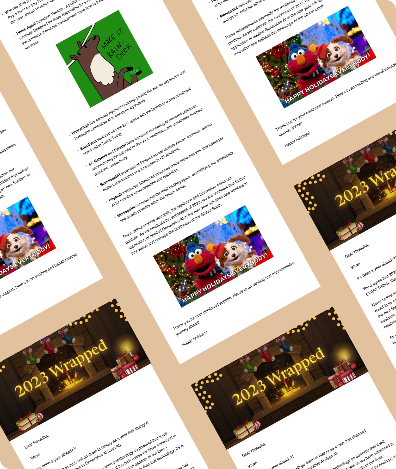 Year-in-review email transforming data and milestones into a compelling story.