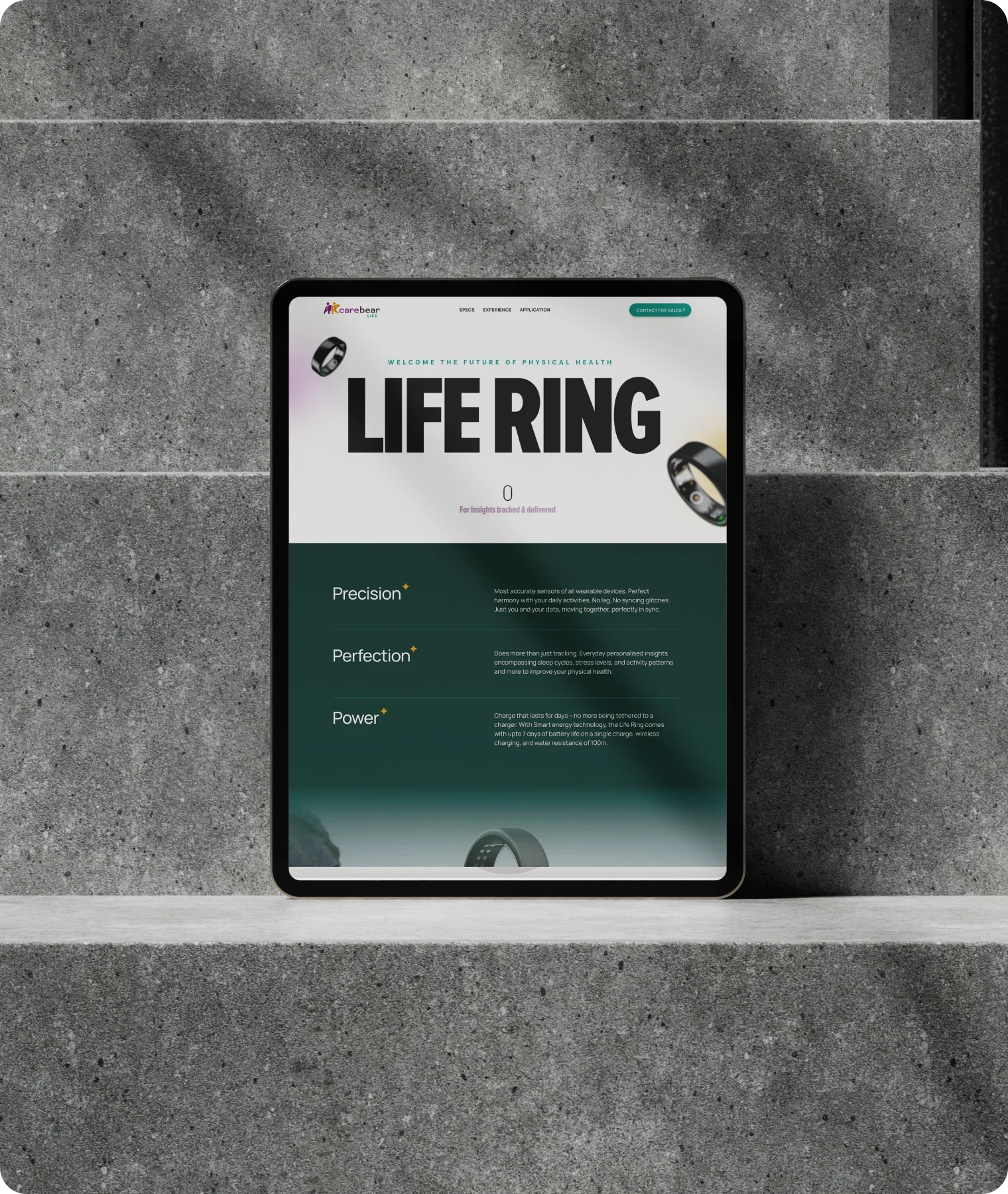 Website for smart ring, the next evolution in wearable health that tracks your vitals.