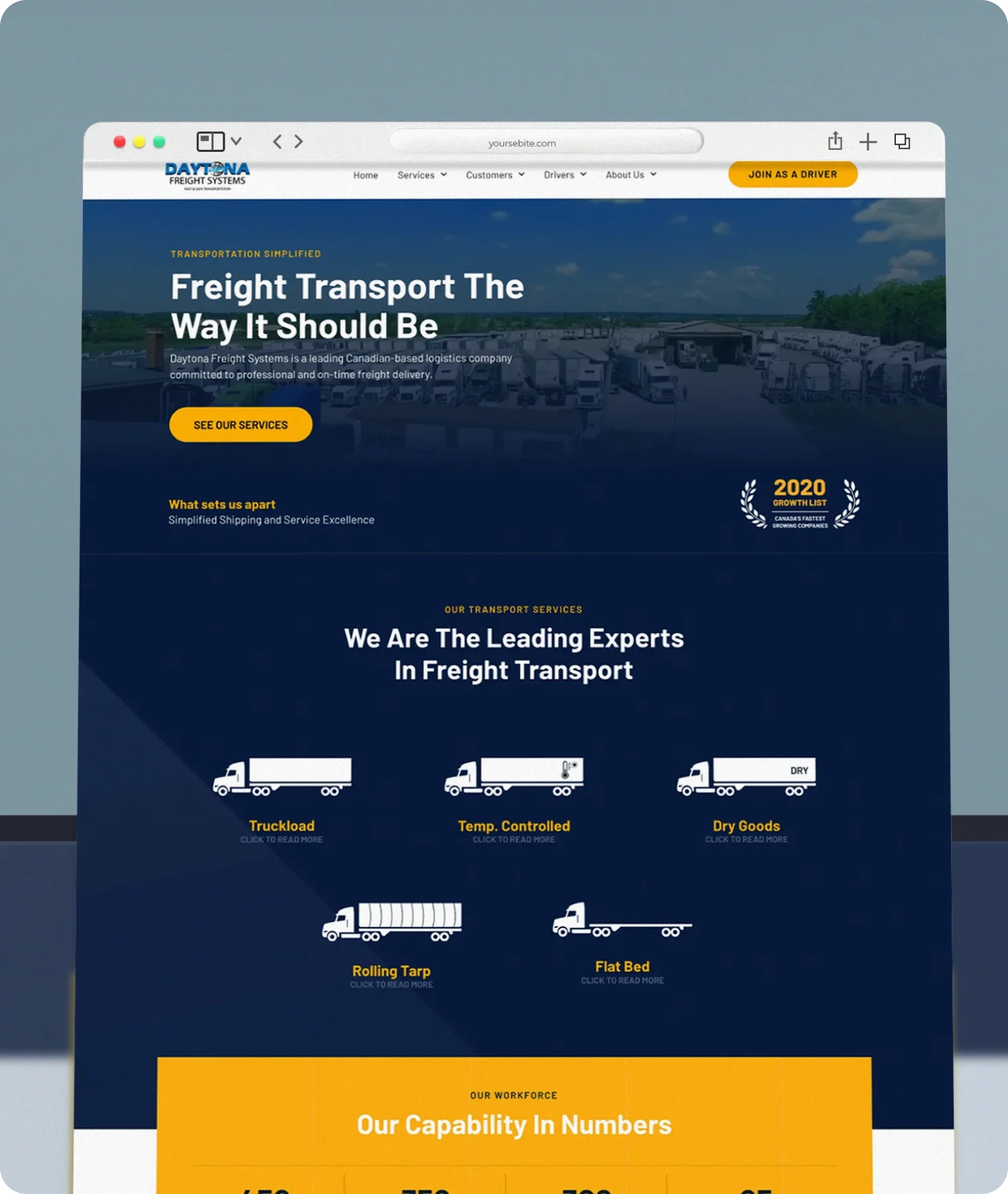 Website for an asset-based freight transport service in and across North America.