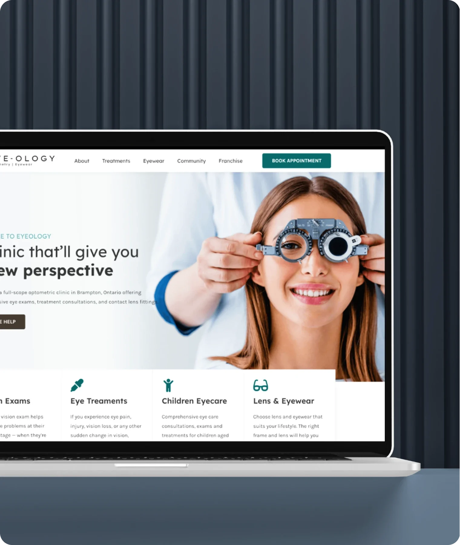 Website for an optometric clinic in Ontario offering comprehensive eye exams and consulting.