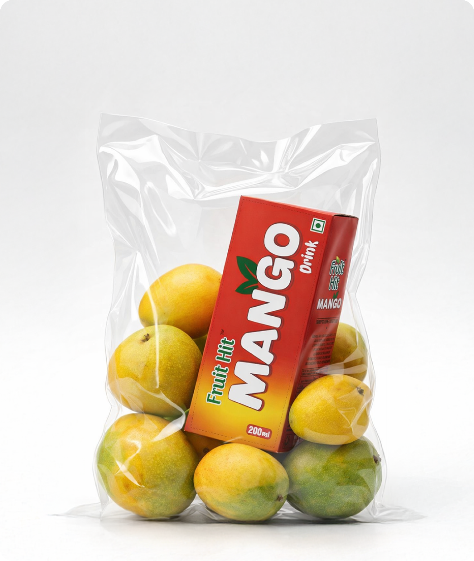 Packaging for a fruit-based product focused on freshness, authenticity, and premium appeal.