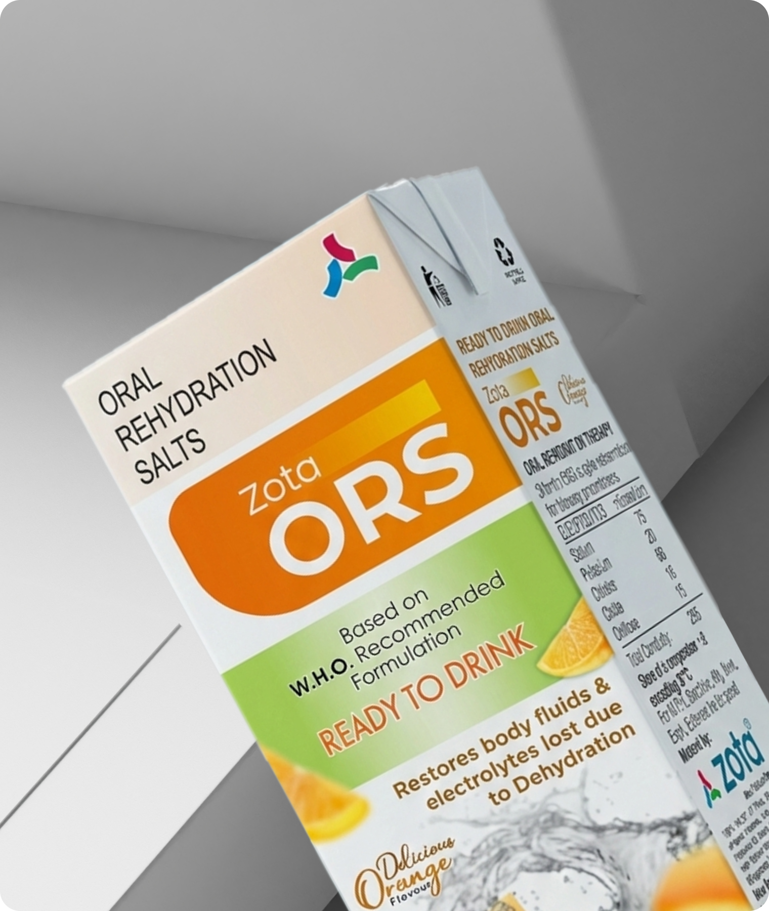 Packaging for ORS balancing medical credibility with a clean, reassuring design.