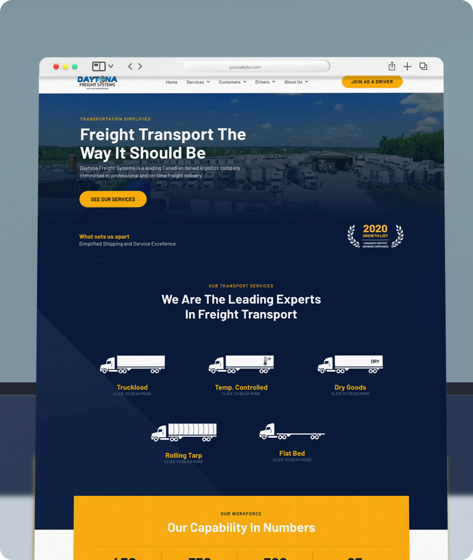 Website for a freight consultancy providing fuel management, financial and consulting solutions.