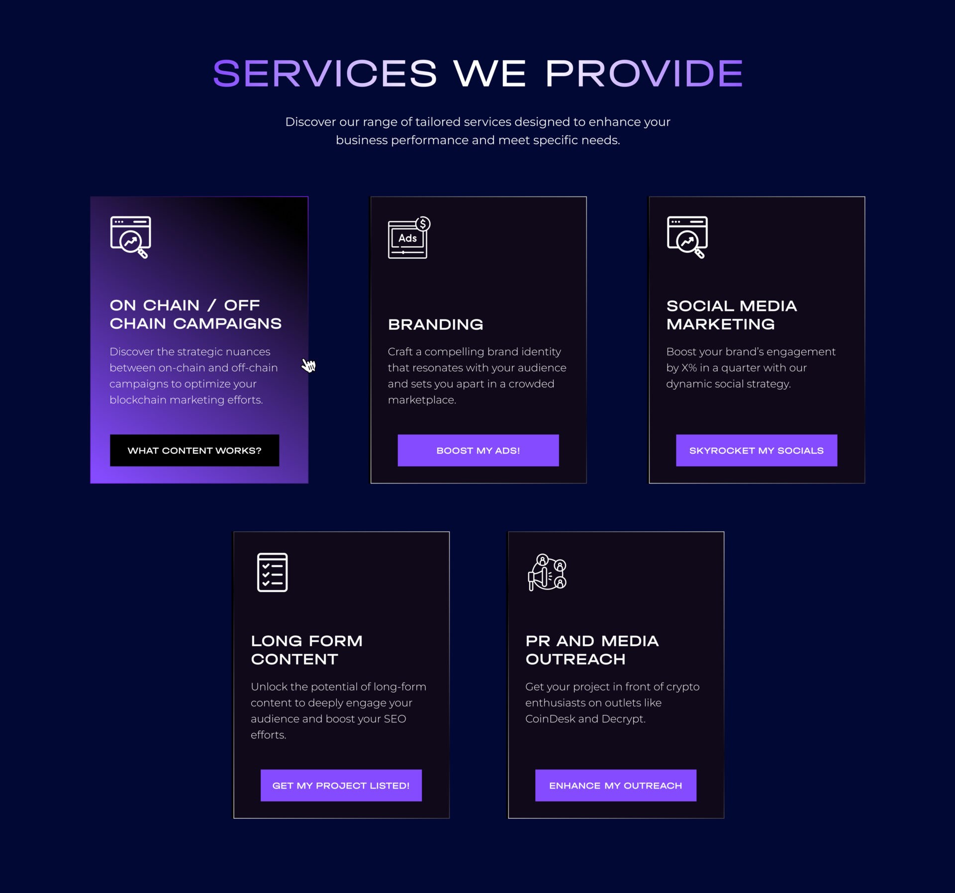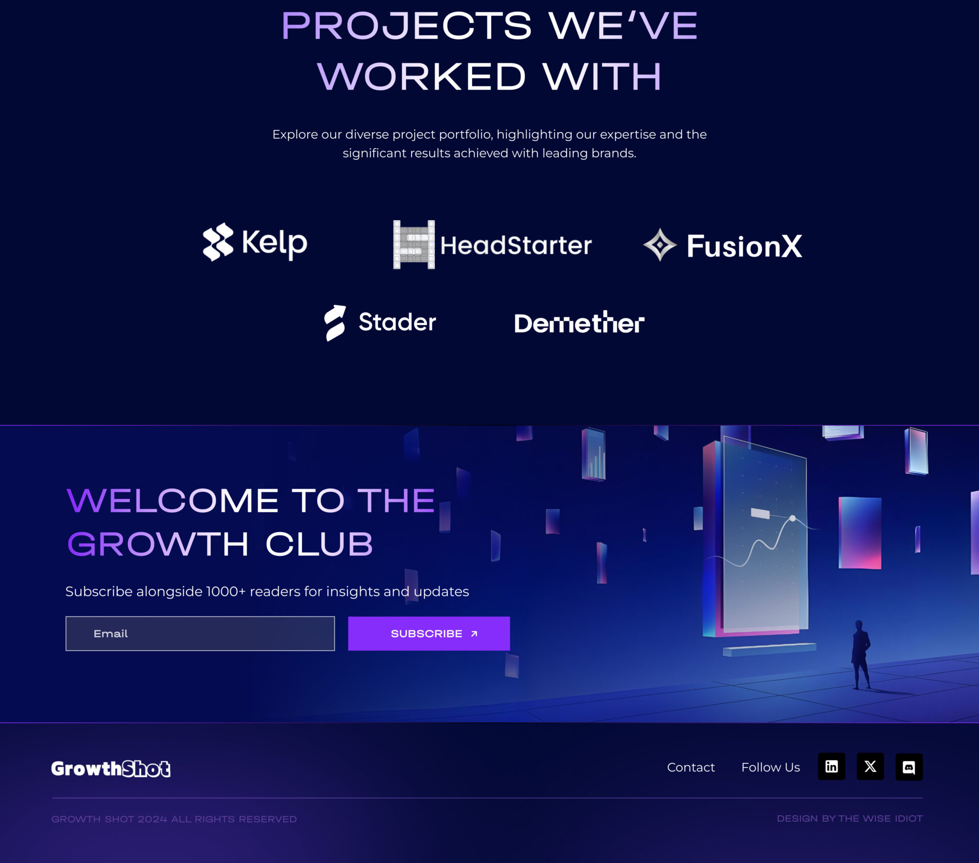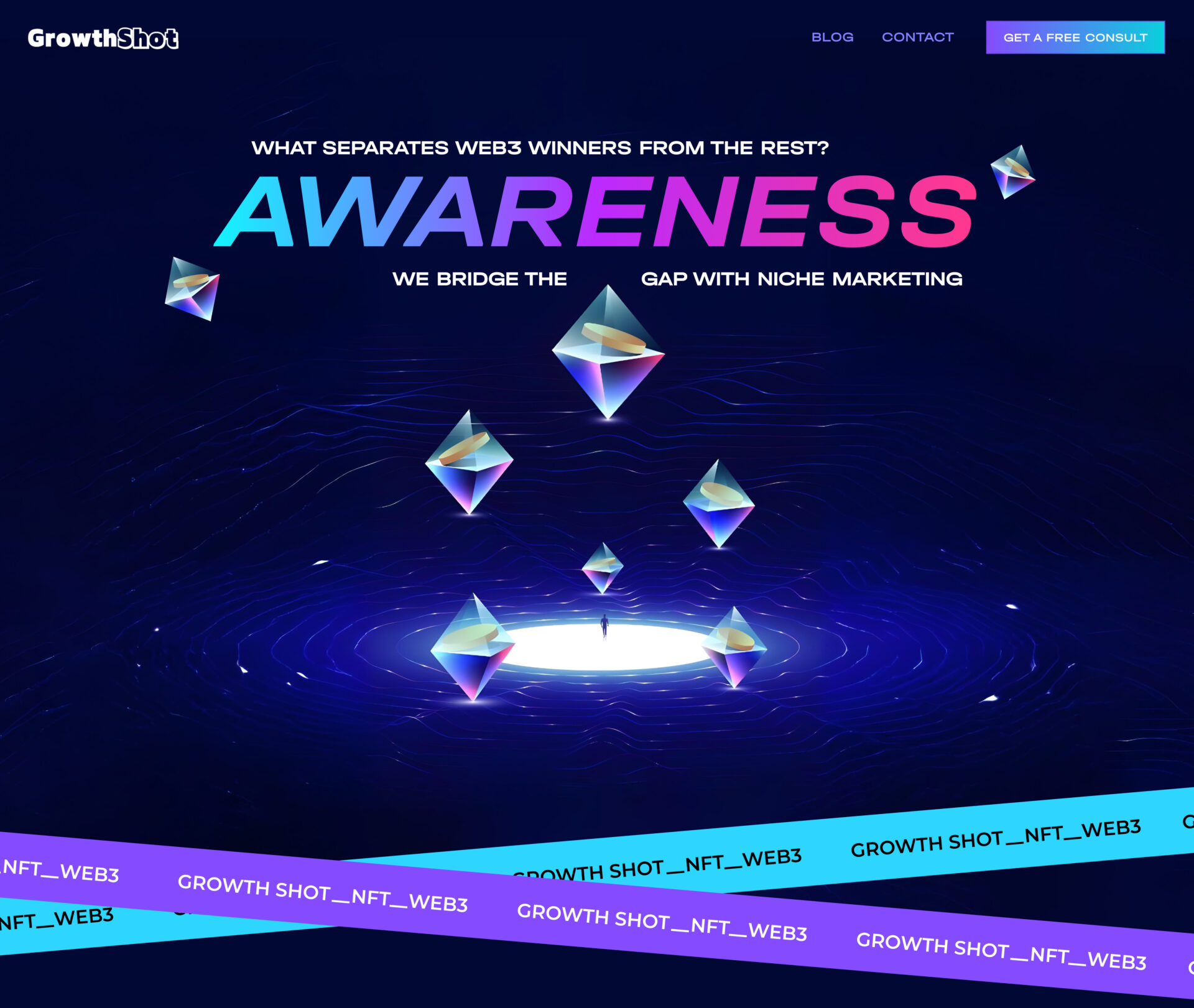GrowthShot is a leading digital marketing platform specifically designed for Web3 NFT companies. They approached us to design a website to showcase their offerings in a unique and modern way. Our team engaged with them to create a high-converting website and a marketing funnel that drove relevant visitors as well as converted them.