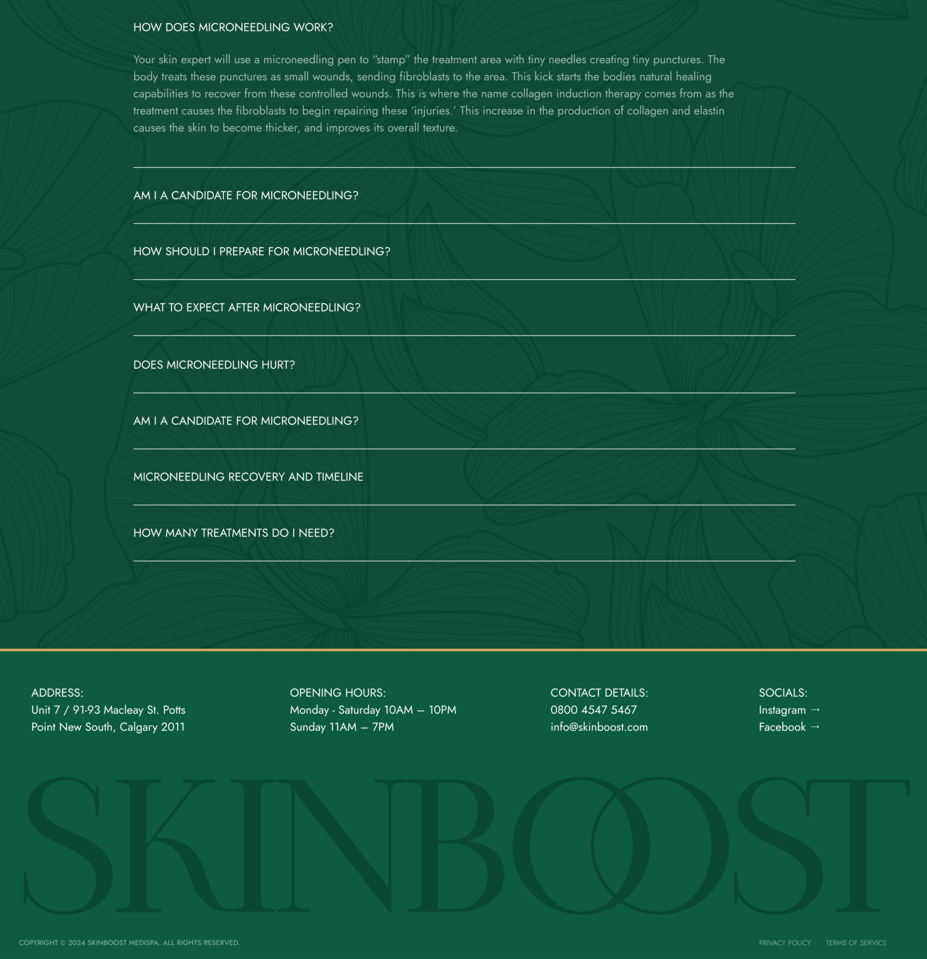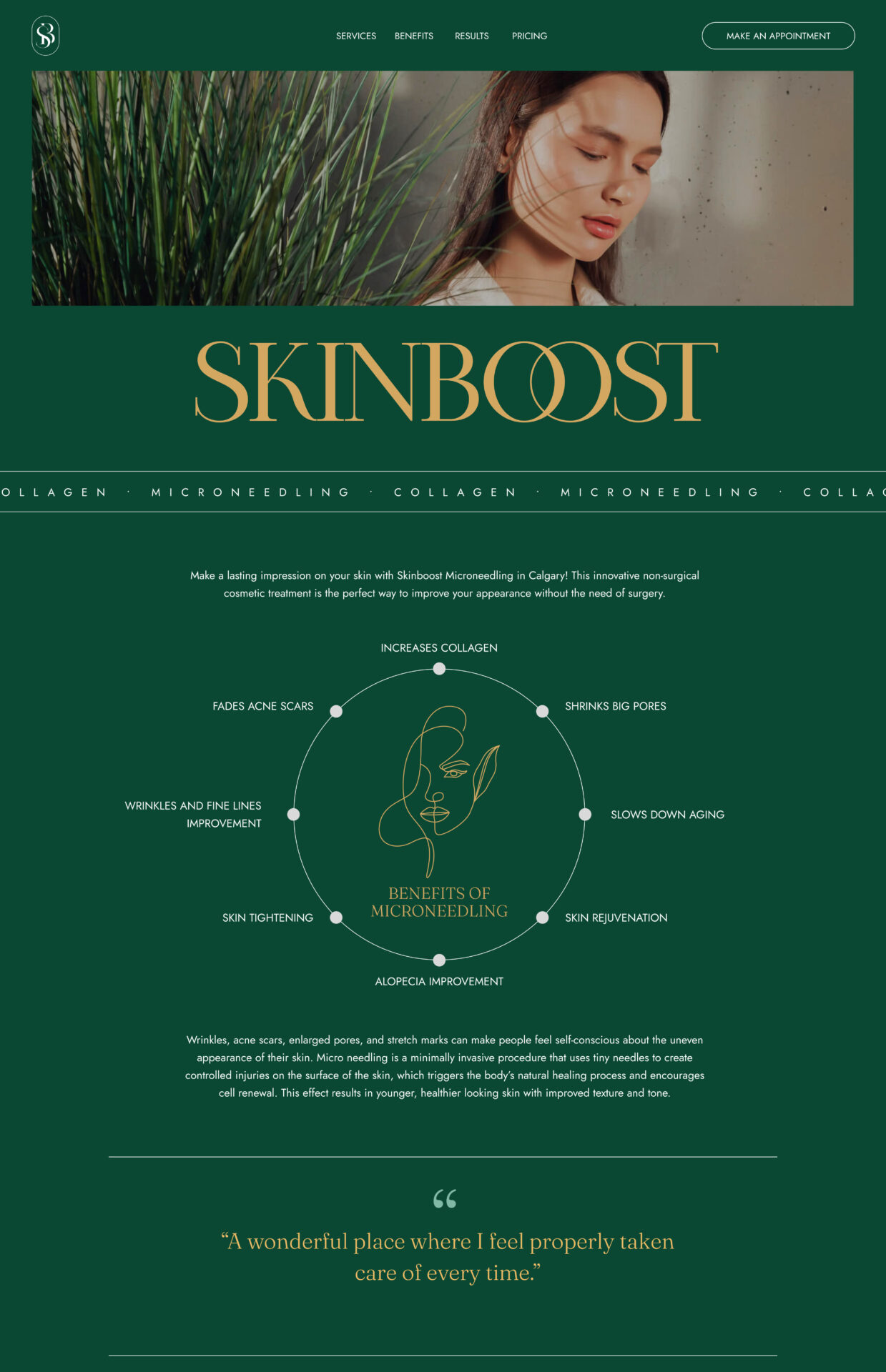 Skinboost Microneedling in Calgary stands at the forefront of advanced skincare treatments, offering a non-surgical approach to rejuvenation. Specializing in addressing common skin concerns such as wrinkles, acne scars, enlarged pores, and stretch marks, Skinboost Microneedling utilizes a minimally invasive technique. They approached us to design their website into a modern platform that enhances the showcasing of their offerings and expertise.